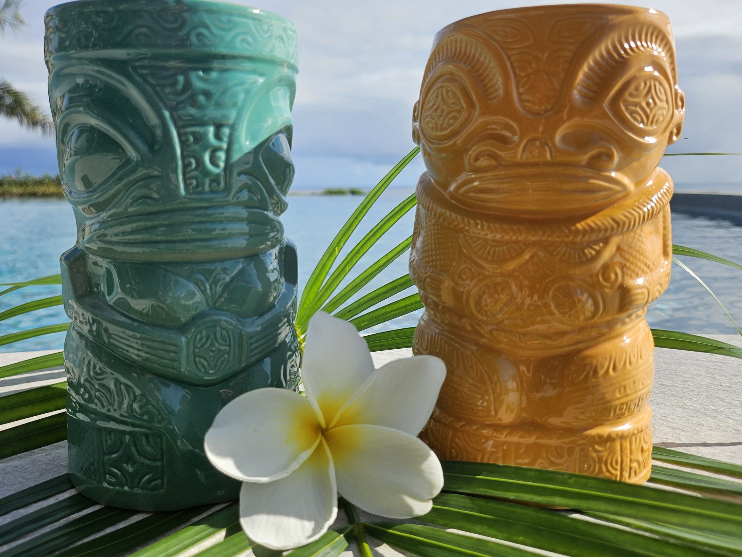 Un verre Tiki en céramique , 2 modèles (rond ou rectangle) de disponibles et plusieurs couleurs.